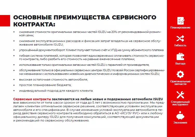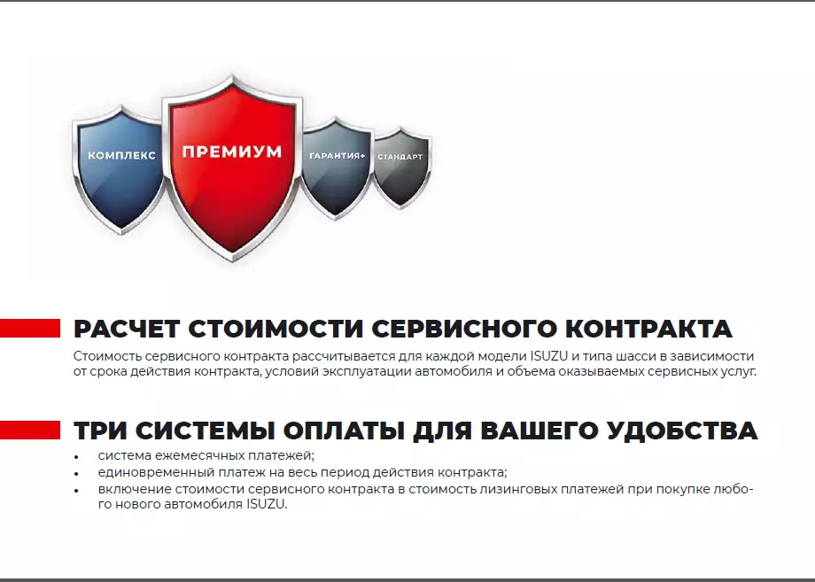Узнайте точную стоимость на сервисный контракт для Вашего автомобиля ISUZU у сотрудников нашего отдела продаж по тел. (351) 218-01-11 и по адресу: Челябинск, ул.Дарвина, 2-в